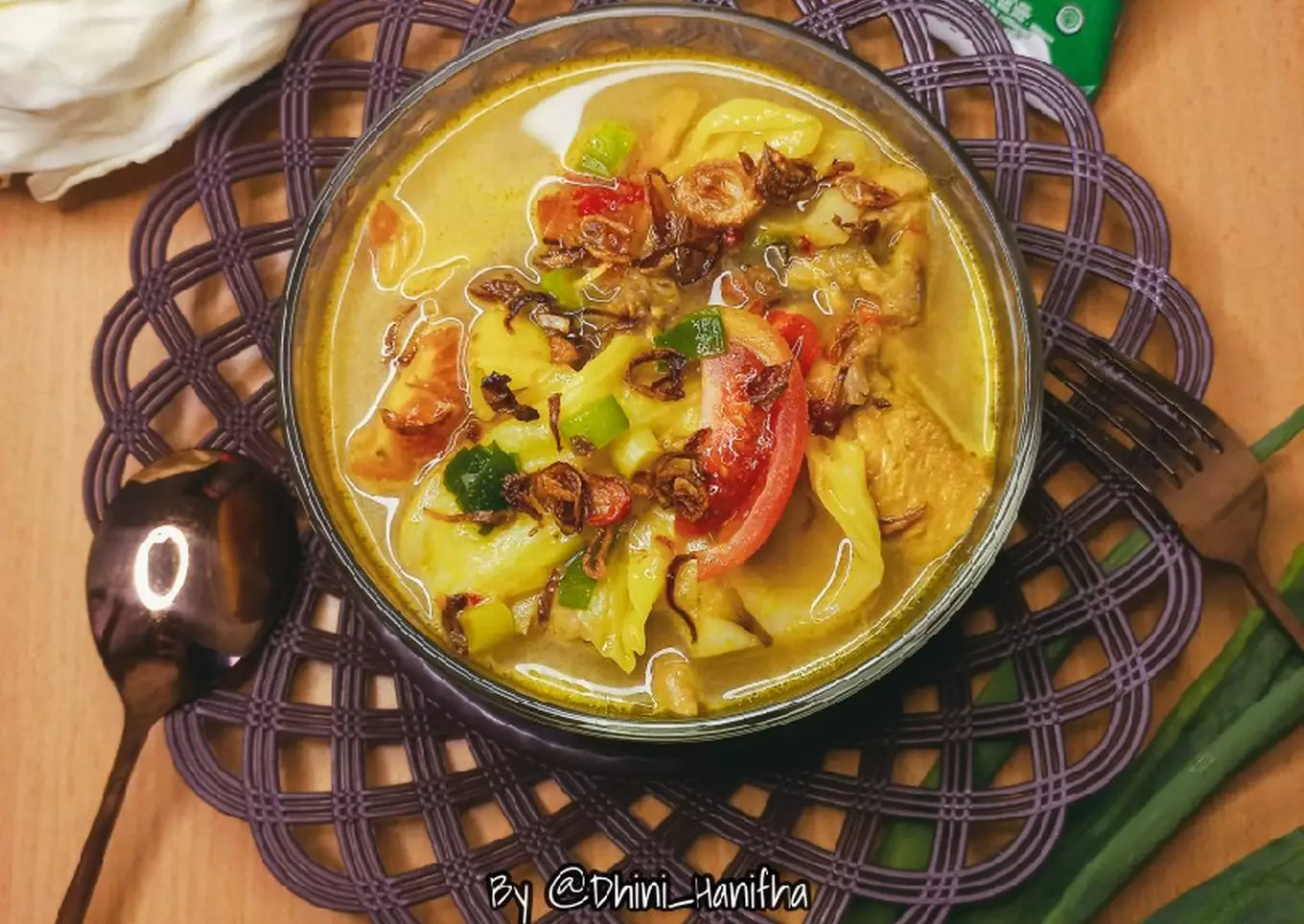 Kemudian terakhir tambahakan santan instan, kubis, tomat irisan daun bawang