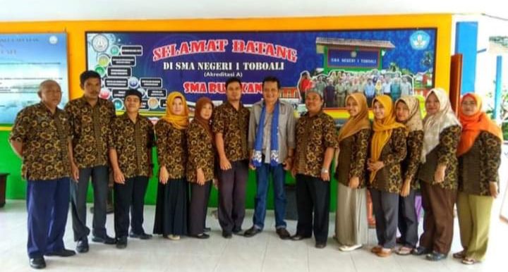 Sastrawan Harry Tjahjono bersama para tenaga pendidik SMAN 1 Toboali. (Foto Istimewa)