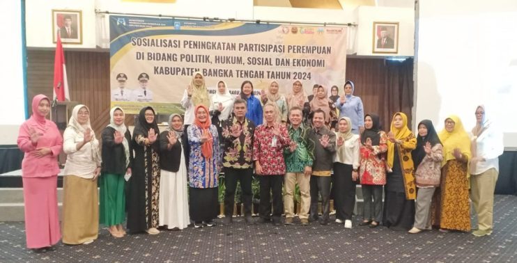 BANGKA TENGAH, TIMELINES.ID — Dinas Pengendalian Penduduk dan Keluarga Berencana, Pemberdayaan Perempuan dan Perlindungan Anak (DPPKBP3A) Kabupaten Bangka Tengah menggelar Sosialisasi Peningkatan Partisipasi Perempuan di Bidang Politik, Hukum, Sosial dan Ekonomi Kabupaten Bangka Tengah, di Hotel Santika, Kamis (4/7/2024).