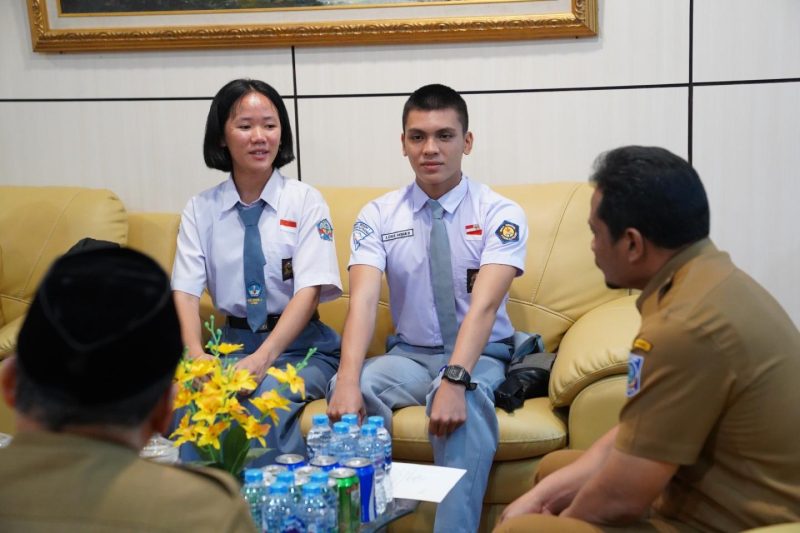 PANGKALPINANG, TIMELINES.ID — Penjabat (Pj) Sekretaris Daerah (Sekda) Pemerintah Provinsi Kepulauan Bangka Belitung (Pemprov. Kep. Babel) Fery Afriyanto didampingi Plt. Kepala Badan Kesbangpol Ahmad Yani menerima audiensi dua paskibraka nasional tahun 2024 asal Bangka Belitung di Ruang Kerja Sekda di Kantor Gubernur Kep. Babel pada Senin (8/7/2024).