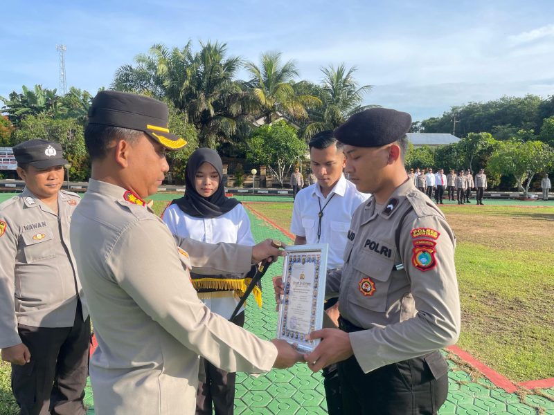 BANGKA SELATAN, TIMELINES.ID — Personel Polres Basel, Bripda Said Hidayatullah menerima penghargaan dari Kapolres Bangka Selatan, AKBP Trihanto Nugroho, Senin (24/2/2025).
