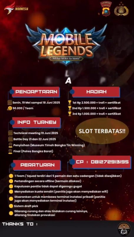 Pencinta Gim MLBB dan FF Merapat! Yuk Daftarkan Tim Terbaikmu di Kapolres Babar Cup