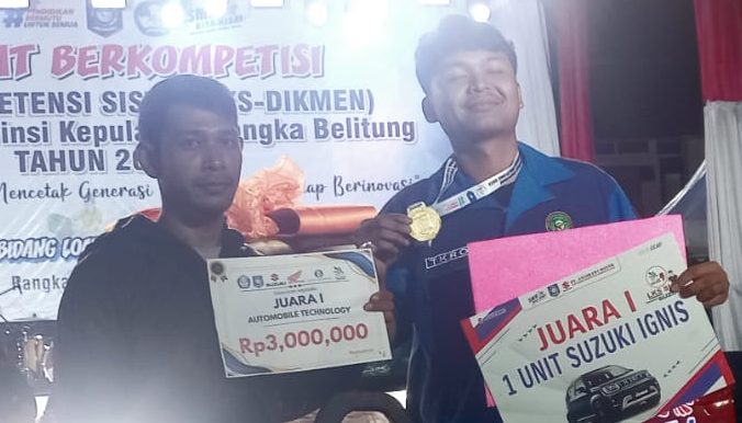 PANGKALPINANG, TIMELINES.ID – Rizkiyan Ramadhan, Siswa SMK Negeri 2 Tanjung Pandan Belitung berhasil membawa pulang satu unit mobil Ignis.