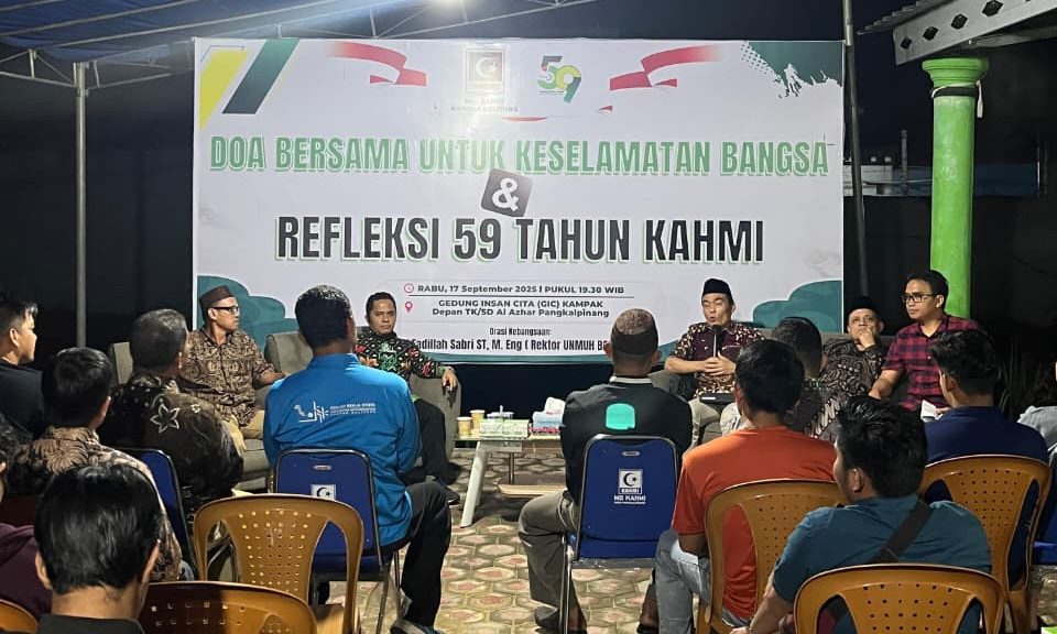 PANGKALPINANG, TIMELINES.ID — Pengurus dan alumni Korps Alumni Himpunan Mahasiswa Islam (KAHMI) merayakan Milad ke-59 KAHMI dengan menggelar orasi kebangsaan di Markas KAHMI Babel, Rabu (17/9/2025) malam.