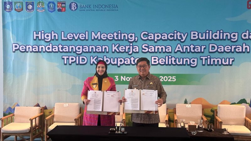 BELITUNG TIMUR, TIMELINES.ID — Wakil Bupati Bangka Selatan, Hj. Debby Vita Dewi, S.E., M.M., menghadiri High Level Meeting, Capacity Building, dan Penandatanganan Kerja Sama Antardaerah (KAD) TPID Kabupaten Belitung Timur yang digelar di Hotel Sheraton Resort Belitung pada Senin (3/11/2025).