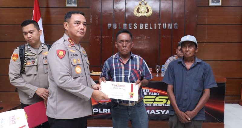 Penghargaan tersebut diberikan dalam kegiatan tatap muka yang berlangsung di Aula Tribrata Polres Belitung, Jumat (27/3/2026). Dua nelayan penerima penghargaan tersebut yakni Hasan Basri dan Abdul Manap, yang telah menunjukkan kepedulian serta keberanian dengan melaporkan temuan narkotika kepada pihak kepolisian.