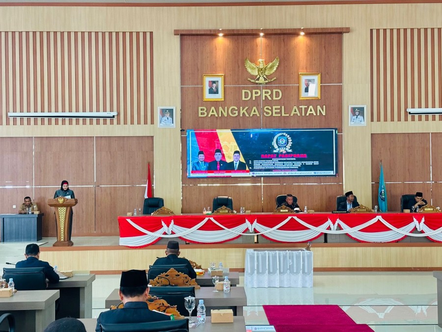 BANGKA SELATAN, TIMELINES.ID — Wakil Bupati Bangka Selatan, Hj. Debby Vita Dewi, S.E., M.M menyampaikan Laporan Keterangan Pertanggungjawaban (LKPJ) Tahun Anggaran 2025 serta Rancangan Peraturan Daerah (Raperda) tentang perubahan atas Peraturan Daerah Nomor 1 Tahun 2017 tentang Pengelolaan Barang Milik Daerah dalam Rapat Paripurna DPRD Kabupaten Bangka Selatan, Senin (30/3/2026).