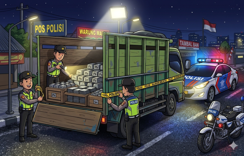 Terbukti, Rabu (1/4/2026) malam lalu, Tim Tipidter Satreskrim Polresta Pangkalpinang berhasil mengamankan sebuah truk A 95xx B yang membawa 12 bag berisi lempengan timah balok.