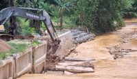Belum Setahun Dibangun, Tembok Kolam Retensi Mentok Sudah Amblas